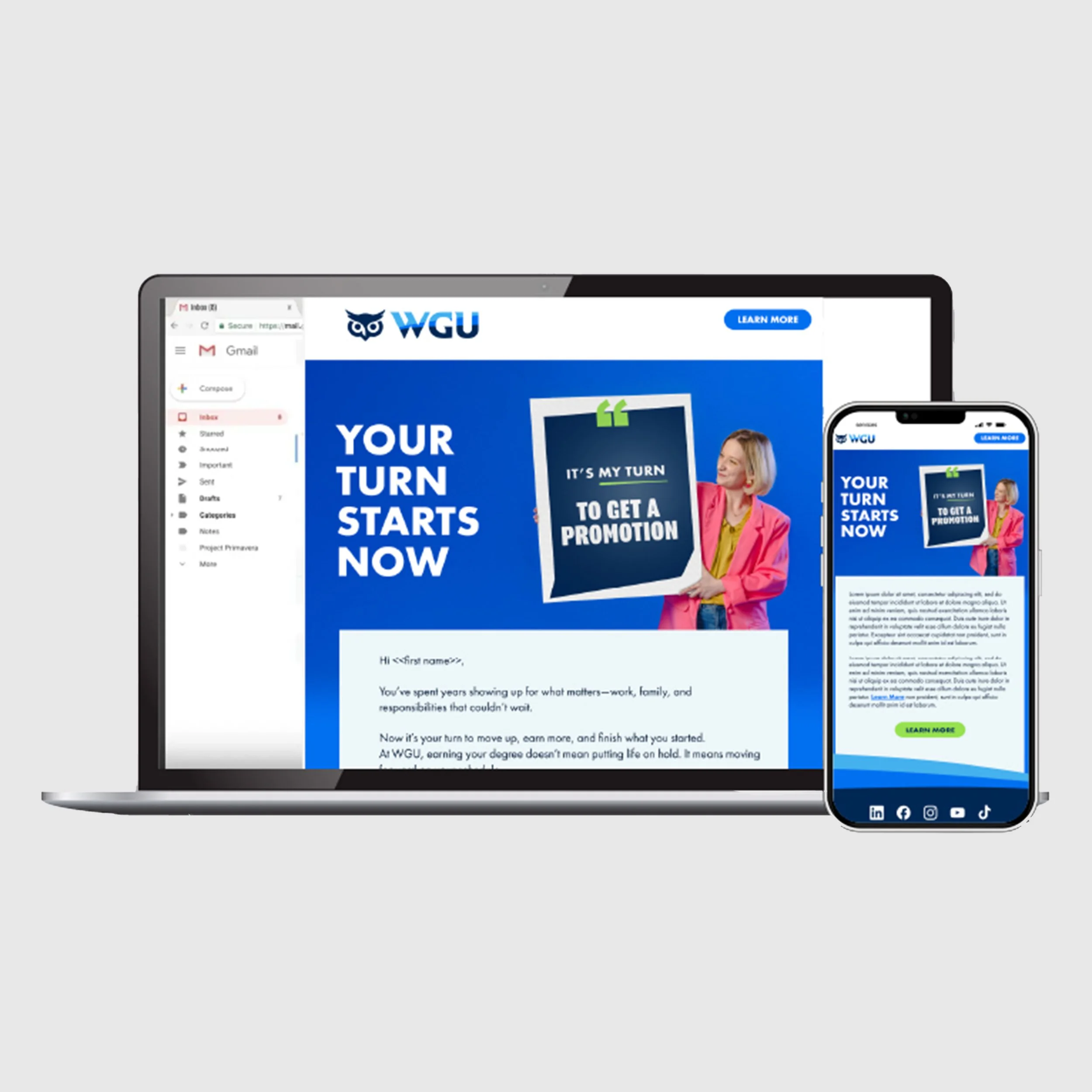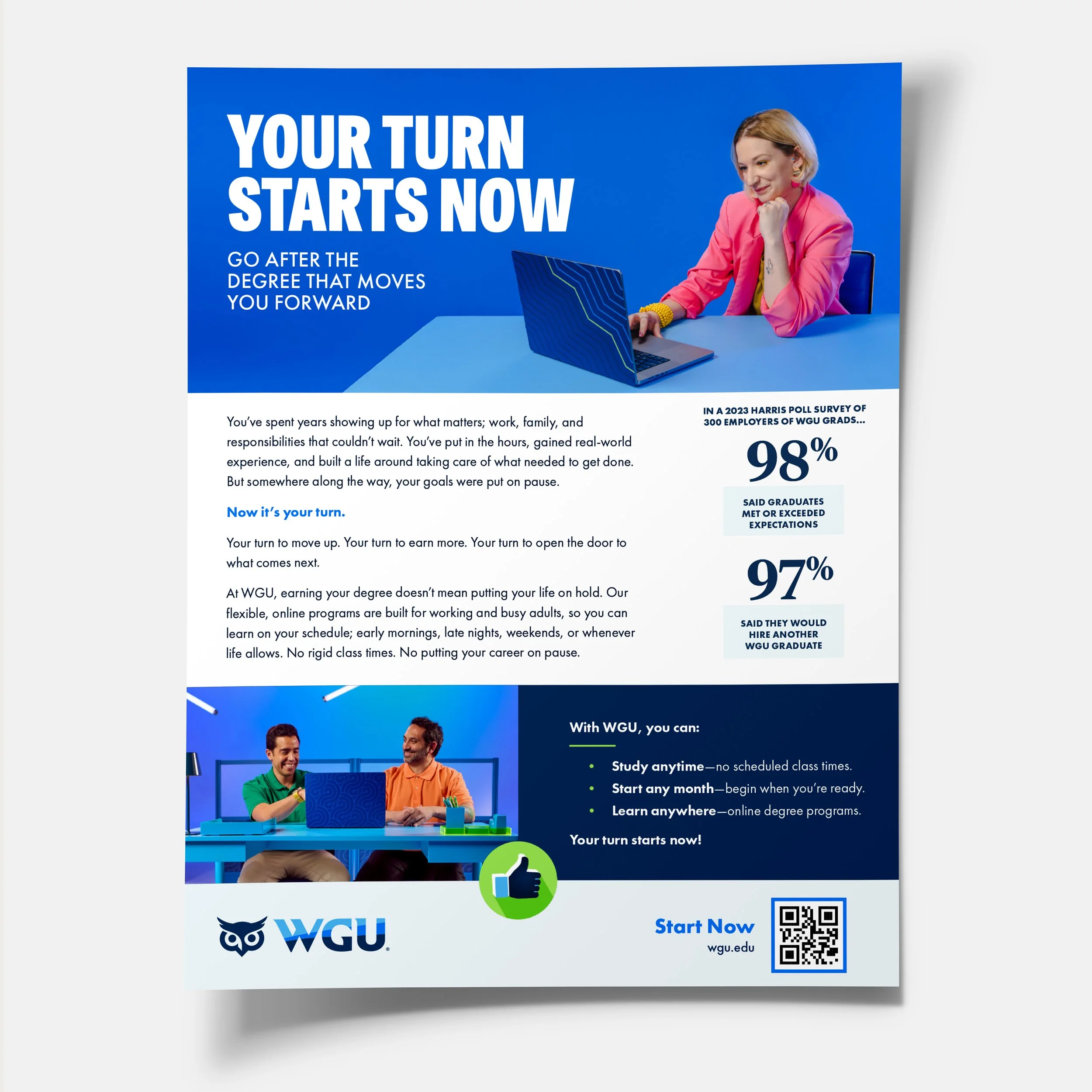 Developed as a national summer campaign for Western Governors University, Your Turn Starts Now was designed to drive fall enrollment by turning intention into action.